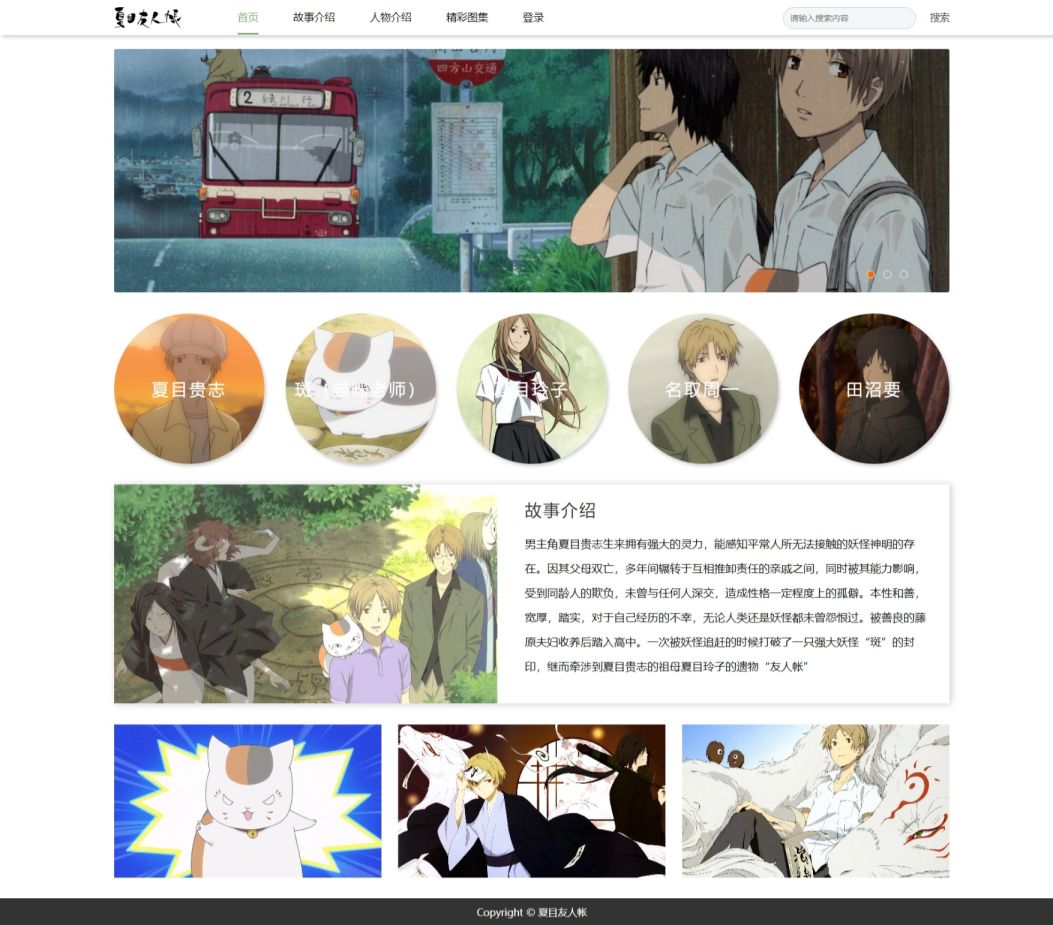 【html+css+javaScript】夏目友人帐 5页